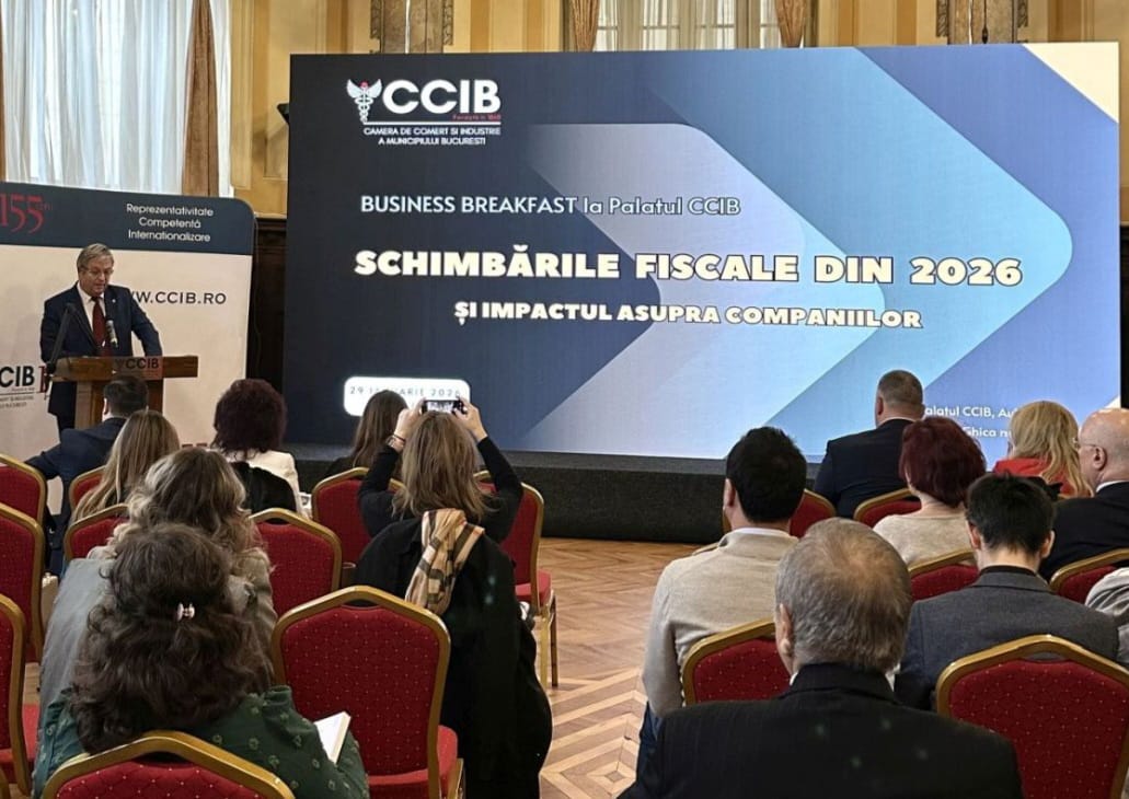 Camera de Comerț și Industrie a Municipiului București (CCIB) a organizat astăzi o nouă ediție a evenimentului Business Breakfast la Palatul CCIB, cu tema „Schimbările fiscale din 2026 și impactul asupra companiilor”.