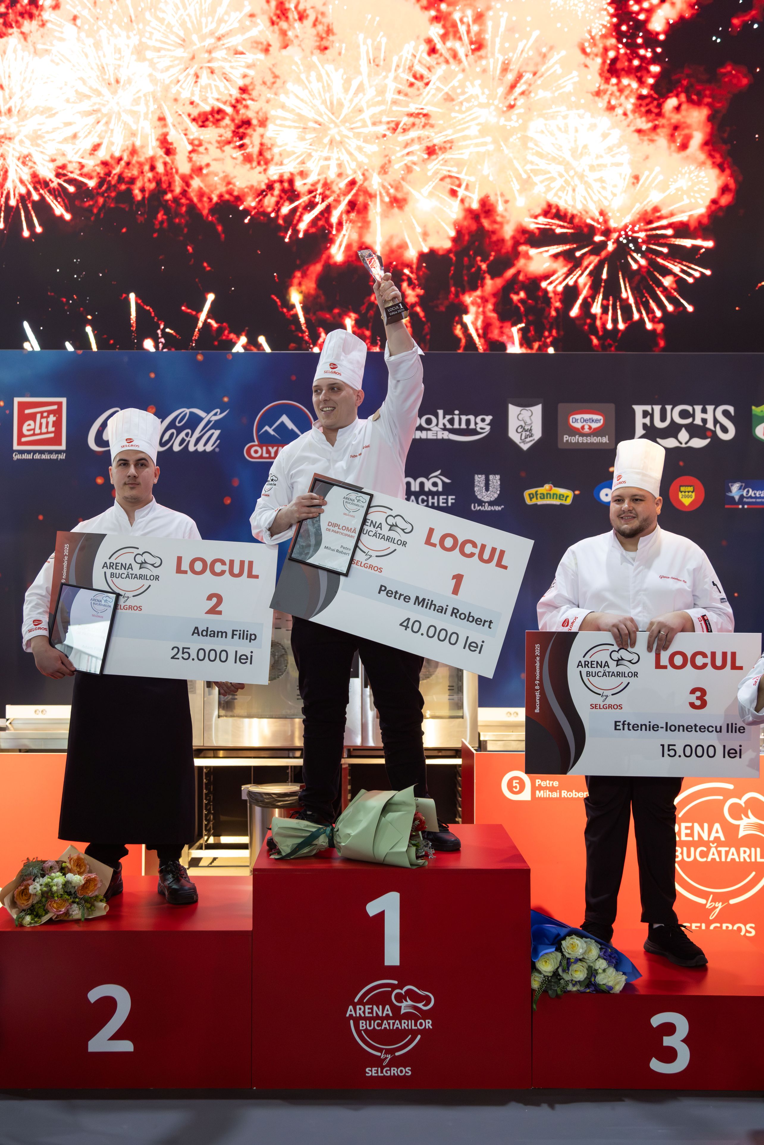 Cea de-a XIV-a ediție a competiției gastronomice Arena Bucătarilor, organizată de Selgros România în perioada 8 – 9 noiembrie, și-a desemnat câștigătorii. Pe podium au urcat Petre Mihai Robert (locul I), Adam Filip (locul al II-lea) și Eftenie Ionetecu Ilie (locul al III-lea), care au primit premii în valoare de 40.000 de lei, 25.000 de lei și, respectiv, 15.000 de lei.