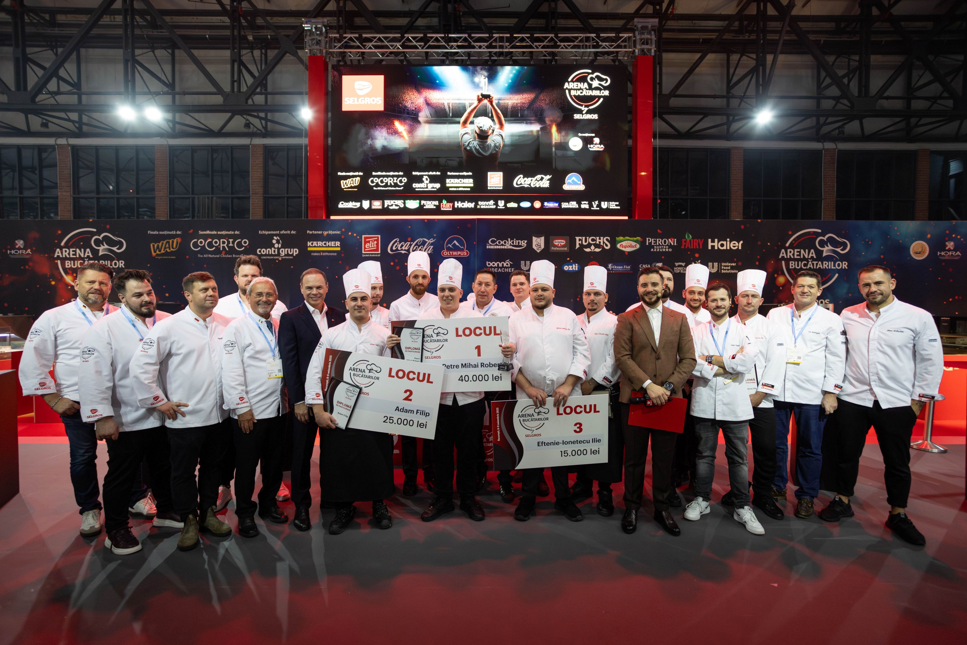 Cea de-a XIV-a ediție a competiției gastronomice Arena Bucătarilor, organizată de Selgros România în perioada 8 – 9 noiembrie, și-a desemnat câștigătorii. Pe podium au urcat Petre Mihai Robert (locul I), Adam Filip (locul al II-lea) și Eftenie Ionetecu Ilie (locul al III-lea), care au primit premii în valoare de 40.000 de lei, 25.000 de lei și, respectiv, 15.000 de lei.