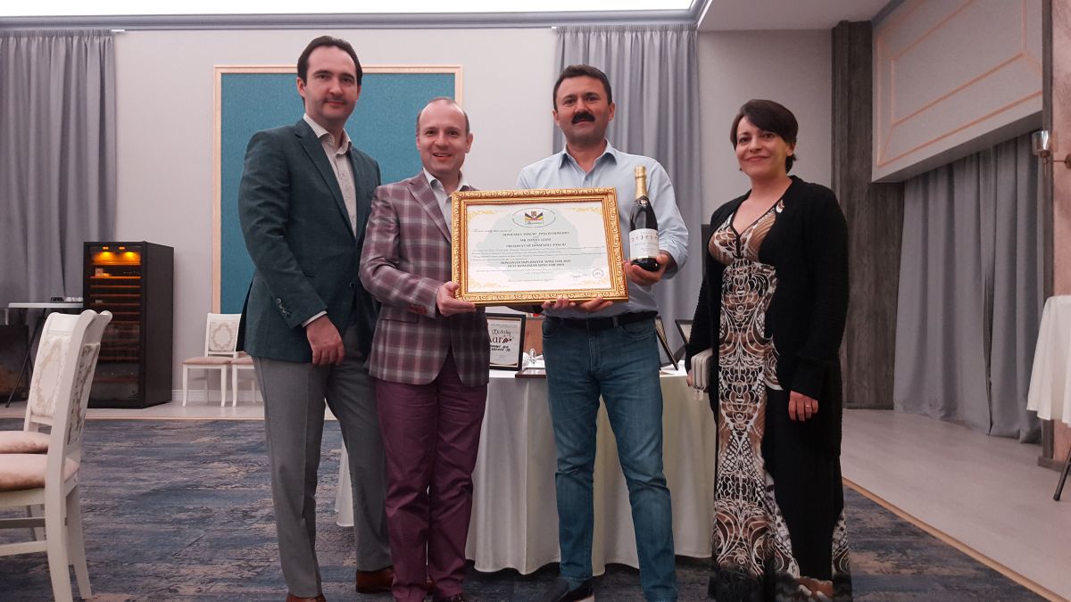 Daniel Guzu – în centrul fotografiei – primește titlul de CREATOR AL VINULUI DIPLOMAȚILOR – CEL MAI BUN VIN AL ROMÂNIEI, pentru anul 2020
