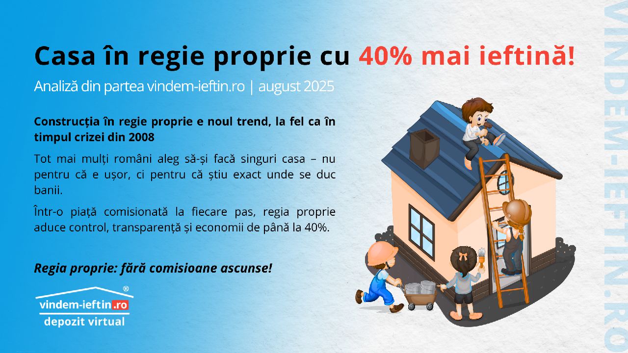 „Asistăm, practic, la o reluare a situației din 2008. După criza imobiliară, românii nu au încetat să construiască, dar s-au implicat personal, au renunțat la dezvoltatori și au ales să-și gestioneze singuri construcția, de la fundație la acoperiș. Același fenomen se întâmplă și acum, în 2025”, afirmă Cosmin Răileanu, fondatorul Vindem-Ieftin.ro și inițiatorul rețelei Depozit Virtual.